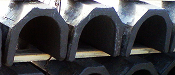 Желобами камнелитыми футеруют каналы гидравлической транспортировки золы и шлаков угольных электростанций, пульпы и шламов обогатительного производства, окалины прокатных станов и других высоко абразивных и химический активных материалов различных производств. Подробнее о применении. ![]()